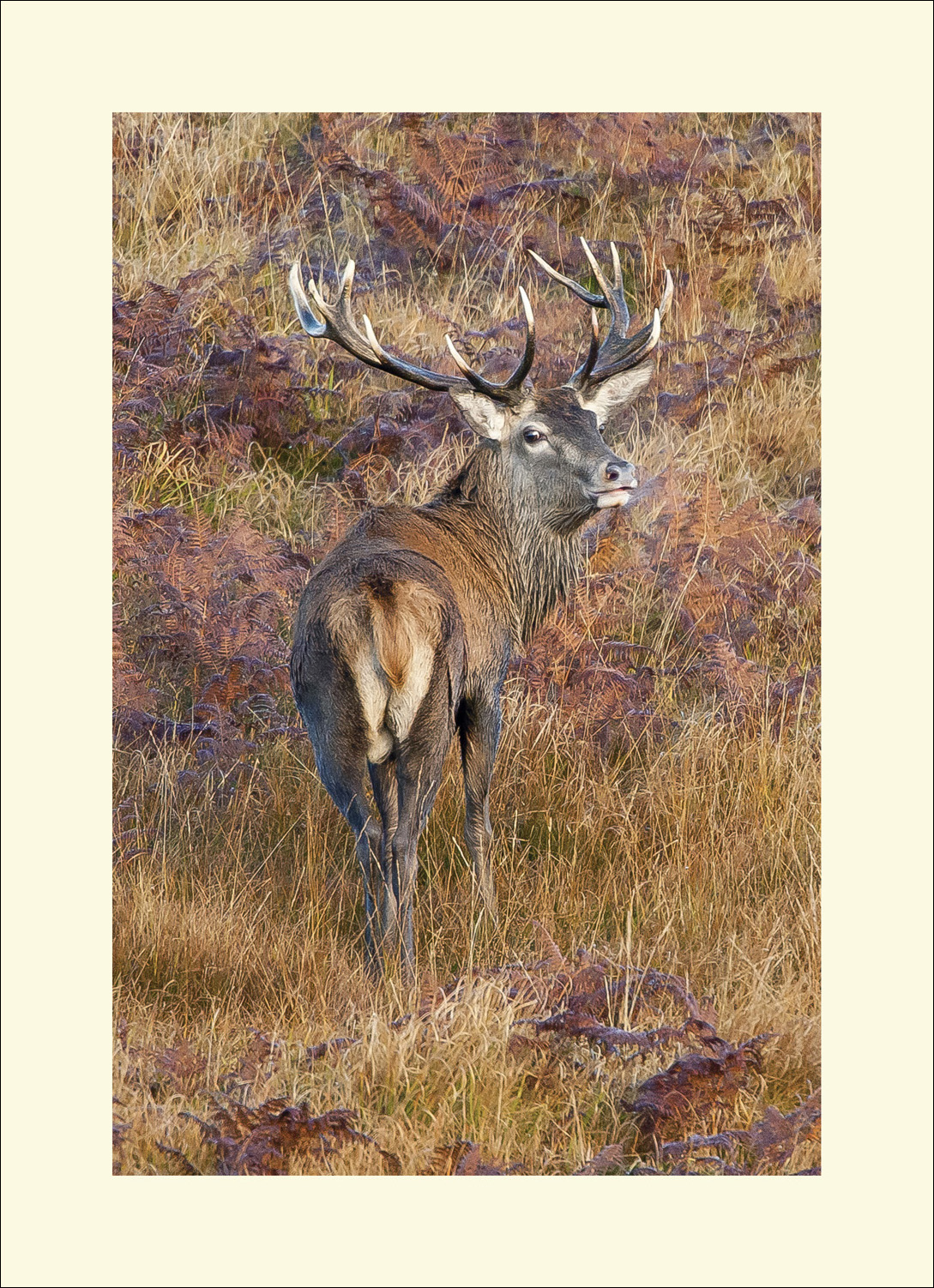 Walking through the Exmoor heather and bracken this beautiful stag stops and looks back at me one more time.