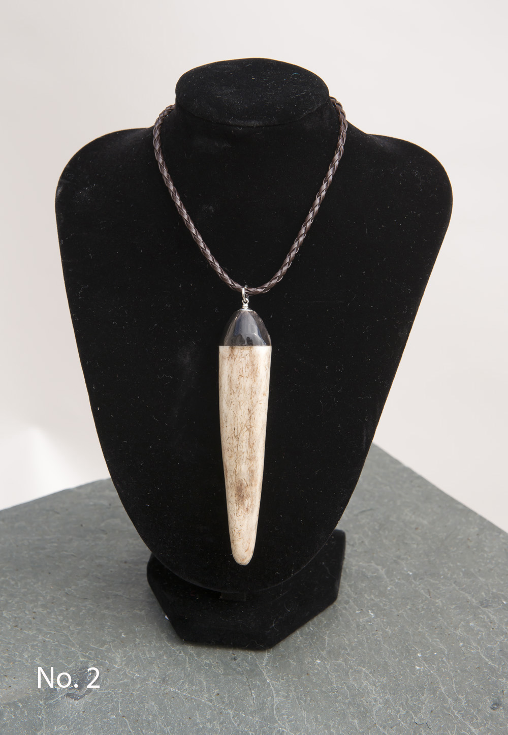 Necklace 2 has an antler tip that is 92mm long on a brown necklace that is 780mm long.
