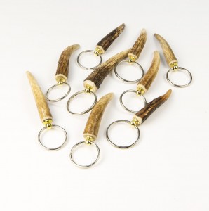 Red Deer Antler Key Rings With Golden Caps